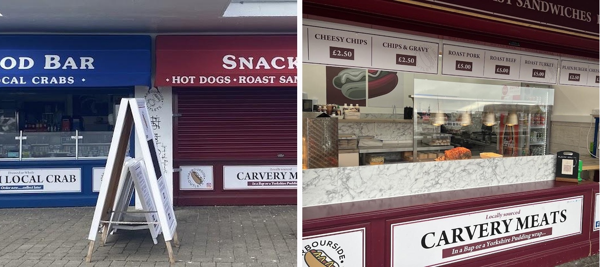 Discover Harbourside Outlets Ltd Food Court in Bridlington, where happy staff serve delicious sandwiches, succulent roast pork, and more, all in a clean and inviting atmosphere. Visit us at 2-3 Harbour Rd, YO15 2NR for a delightful dining experience!